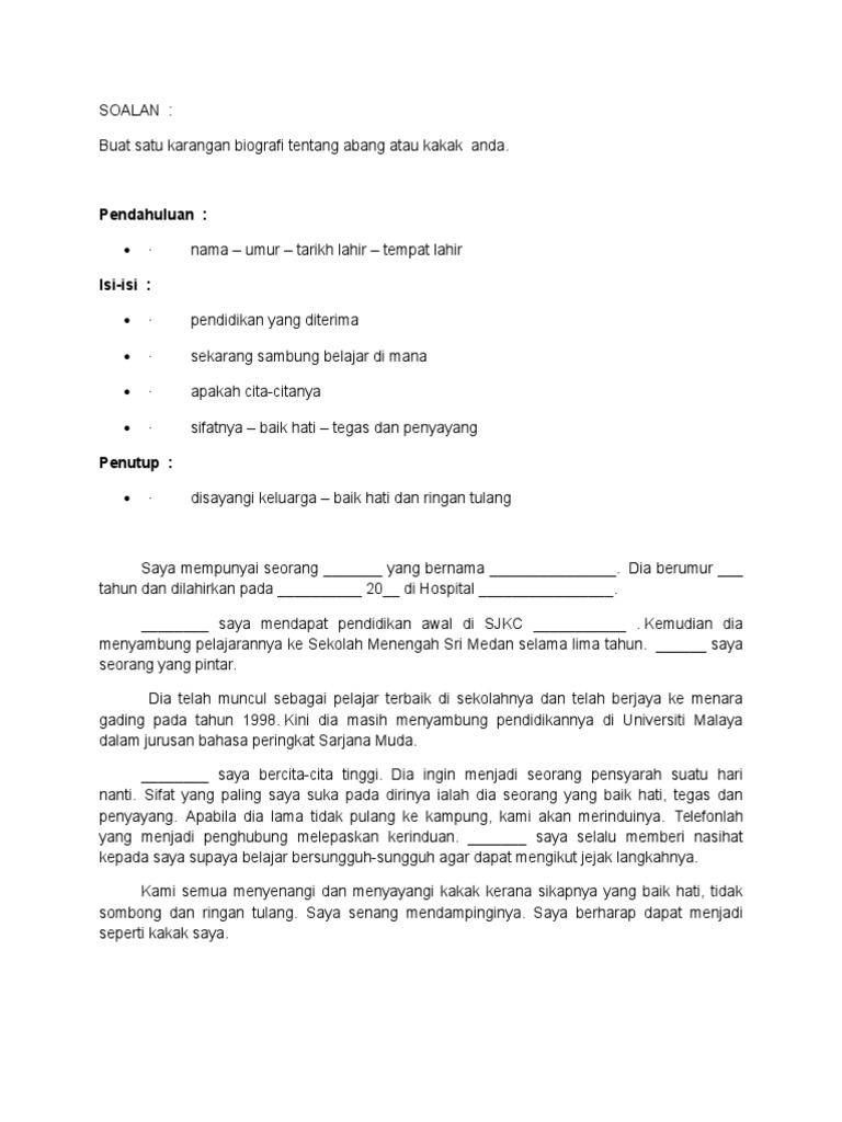 Contoh Karangan Sekolah Rendah Tahun 4 Biografi